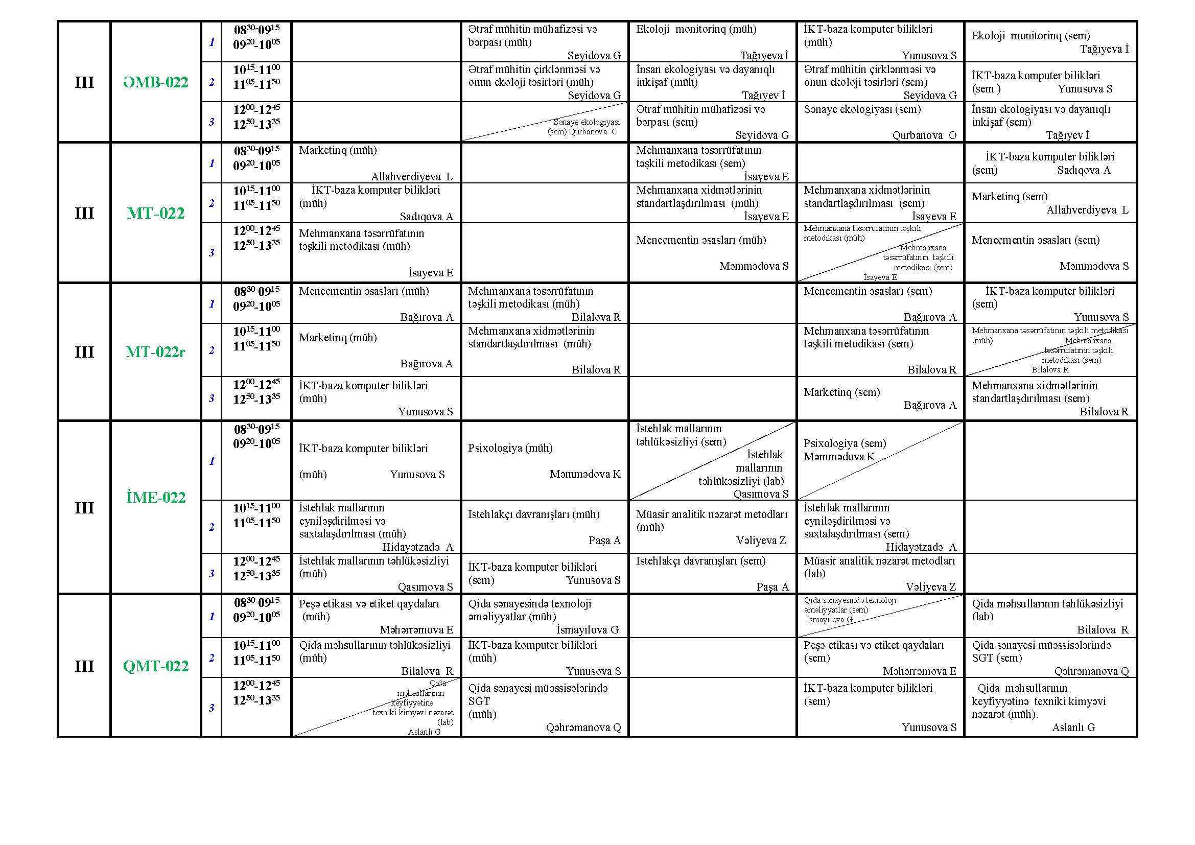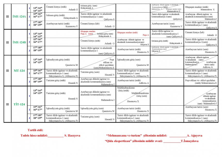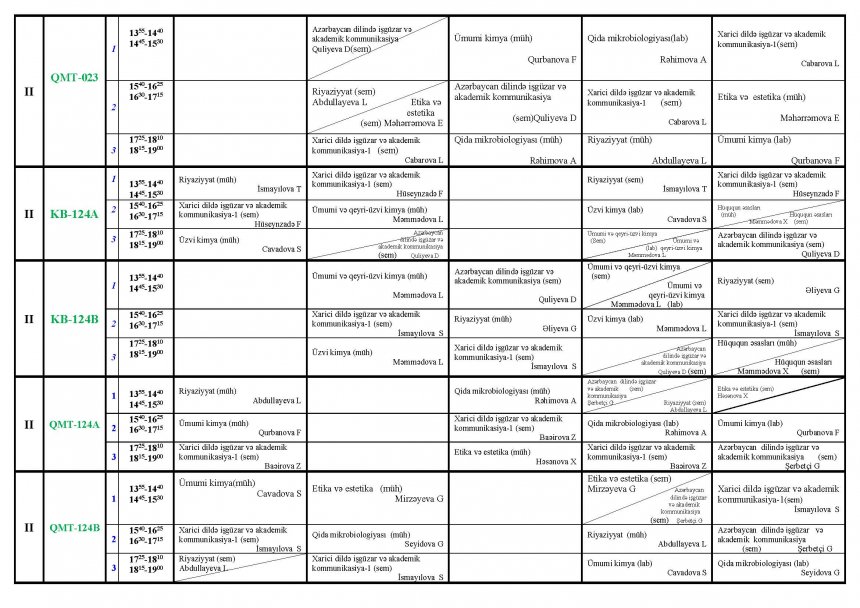 2024/2025-ci tədris ilinin payız semestri üzrə dərs cədvəli ( I-II NÖVBƏ ) Keşlə korpusu