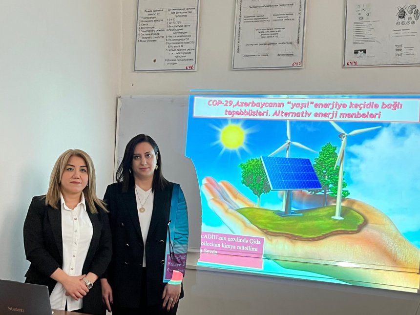 Azərbaycan Dövlət İqtisad Universitetinin nəzdində Qida Sənayesi Kollecində "Kimya,biologiya,ekologiya və sanitar-gigiyena" fənn birləşmə müəllimi Sevda Cavadova tərəfindən açıq dərs keçirilmişdir. COP 29