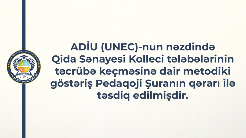 ADİU (UNEC)-nun nəzdində Qida Sənayesi Kolleci tələbələrinin təcrübə keçməsinə dair metodiki göstəriş Pedaqoji Şuranın qərarı ilə təsdiq edilmişdir.
