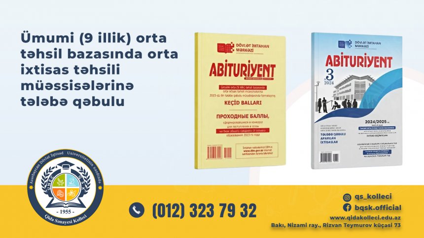 Dövlət İmtahan Mərkəzi "Abituriyent" jurnalının 3-cü nömrəsini və “Ümumi (9 illik) orta təhsil bazasında orta ixtisas təhsili müəssisələrinə 2023-cü ilin tələbə qəbulu müsabiqəsində formalaşmış keçid balları”nı nəşr edib.