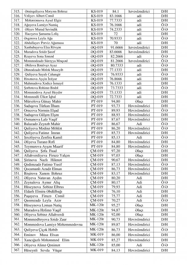 2020/2021–ci tədris ilinin payız semestrinin yekunu nəticəsində təqaüd alan tələbələrin siyahısı