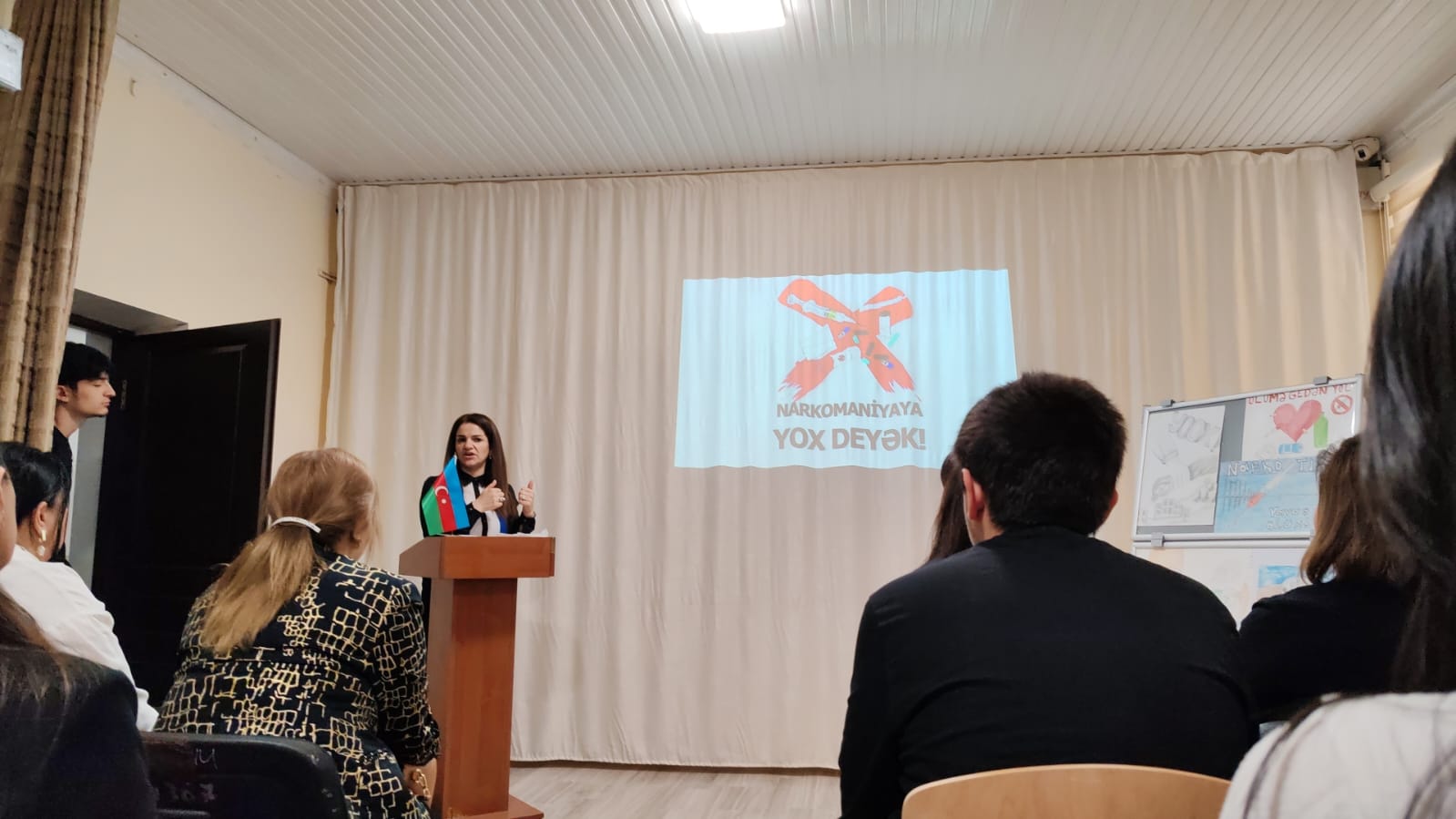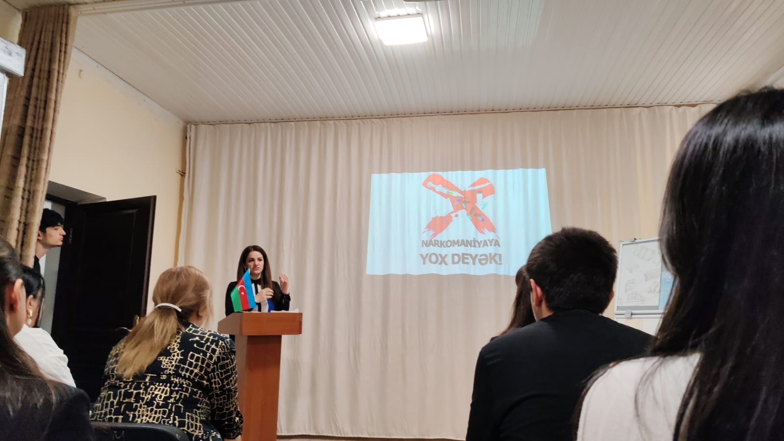 Narkomanlığa və narkotik vasitələrin qanunsuz dövriyyəsinə qarşı mübarizə və aradan qaldırılması məqsədilə Azərbaycan Dövlət İqtisad Universitetinin nəzdində Qida Sənayesi Kollecində “Narkomaniyaya YOX” adlı maarifləndirmə və təşviqat xarakterli tədbir keçirilmişdir. Tədbirdə kollecin həkim-pedaqoqu İsgəndərova Leyla Narkotik maddələrdən ilk öncə tibbdə istifadə olunmağa başladığını qeyd etmişdir. O, Narkamaniyaya tibbi cəhətdən yanaşaraq mərkəzi sinir sisteminə spesifik təsir göstərən və tez bir zamanda asılılıq yaradan maddələrin orqanizmə zərərlərindən danışmışdır. Kollecin psixoloqi Bəsti Hacıyeva da öz çıxışında narkomaniya haqqında ilkin məlumat verərək Narkomanlığın - xroniki intoksikasiya doğuran, narkotik və psixotrop maddələrin istifadəsi nəticəsində yaranan, psixi və fiziki asılılıqla müşayiət olunan xəstəlik olduğunu vurğulamışdır. Narkomaniya xəstələrində narkotiklərin qəbulunun dayandırılması və ya dozanın azaldılmasından bir müddət sonra inkişaf edən fiziki və psixi pozulmalar abstinent sindromuna (lomka) gətirib çıxardığını da söyləyərək tədbirdə iştirak edən gənclərə öz tövsiyyələrini vermişdir. Kimya müəllimi Leyla Məmmədova da çıxış edərək Narkomanlığın insan cəmiyyətinin mənəvi və əxlaqi dəyərlərinə ciddi zərbə vuran, sosial-iqtisadi inkişafa mənfi təsir göstərən, insanların həyat və sağlamlığına böyük təhlükə yaradan, həmçinin cinayətkarlığın artmasına səbəb olan əsas amillərdən biri olduğunu diqqətə çatdırmışdır. Daha sonra zərərli vərdişlərdən olan siqareti də qeyd edərək sağlam gənclik naminə bu cür zərərli vərdişlərdən uzaq olmağa çağırış etmişdir. Ümummilli liderimiz Heydər Əliyev də bu sahəyə xüsusi həssaslıqla yanaşaraq "Narkomanlığa və narkotik vasitələrin qanunsuz dövriyyəsinə qarşı tədbirlər haqqında" 1996-cı il 26 avqust tarixli Fərmanı və digər qanunlar, fərmanlar, normativ-hüquqi aktlar narkotiklərlə mübarizənin əsas strateji xəttini müəyyənləşdirmişdir. Tədbir Heydər Əliyevin 101 illiyinə həsr olunmuş marafon yarışlarına qoşularaq uğurlar qazanan tələbələrə mükafat təqdim olunaraq “Sağlam bədən-sağlam ruh” devizi ilə tamamlanmışdır.