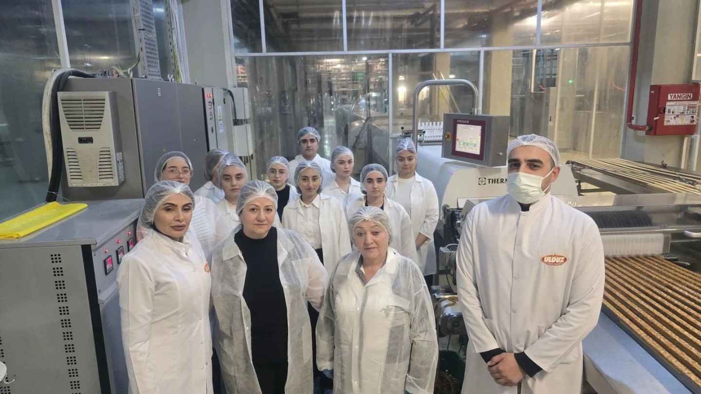 Fabrik əməkdaşları tələbələrə gigiyena və qida təhlükəsizliyi standartlarının necə qorunduğunu ətraflı izah etdilər. Onlar istehsal sahəsində sanitariya qaydalarına ciddi əməl edildiyini, avadanlıqların daim dezinfeksiya olunduğunu və işçilərin xüsusi geyim qaydalarına riayət etdiyini müşahidə etdilər. Tələbələr həmçinin müxtəlif mərhələlərdə aparılan keyfiyyət nəzarəti prosedurlarını izlədilər, məhsulların beynəlxalq standartlara uyğun istehsal olunmasını təmin edən əsas prosesləri gördülər.