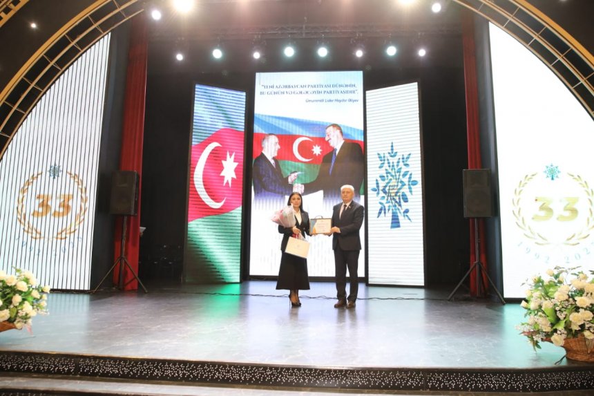 Nizami rayonunda Yeni Azərbaycan Partiyasının təsis olunmasının 33-cü ildönümü münasibətilə “Yeni Azərbaycan Partiyası – dünənin, bu günün və gələcəyin partiyasıdır” mövzusunda tədbir keçirilib. Tədbir çərçivəsində partiyanın Nizami rayon təşkilatının gənclər siyasətinin inkişafına, gənclərin milli-vətənpərvərlik ruhunda yetişdirilməsinə verdiyi töhfələrə, eləcə də təşkilatın ictimai-siyasi həyatında fəal iştirakına görə mükafatlar təqdim olunub.