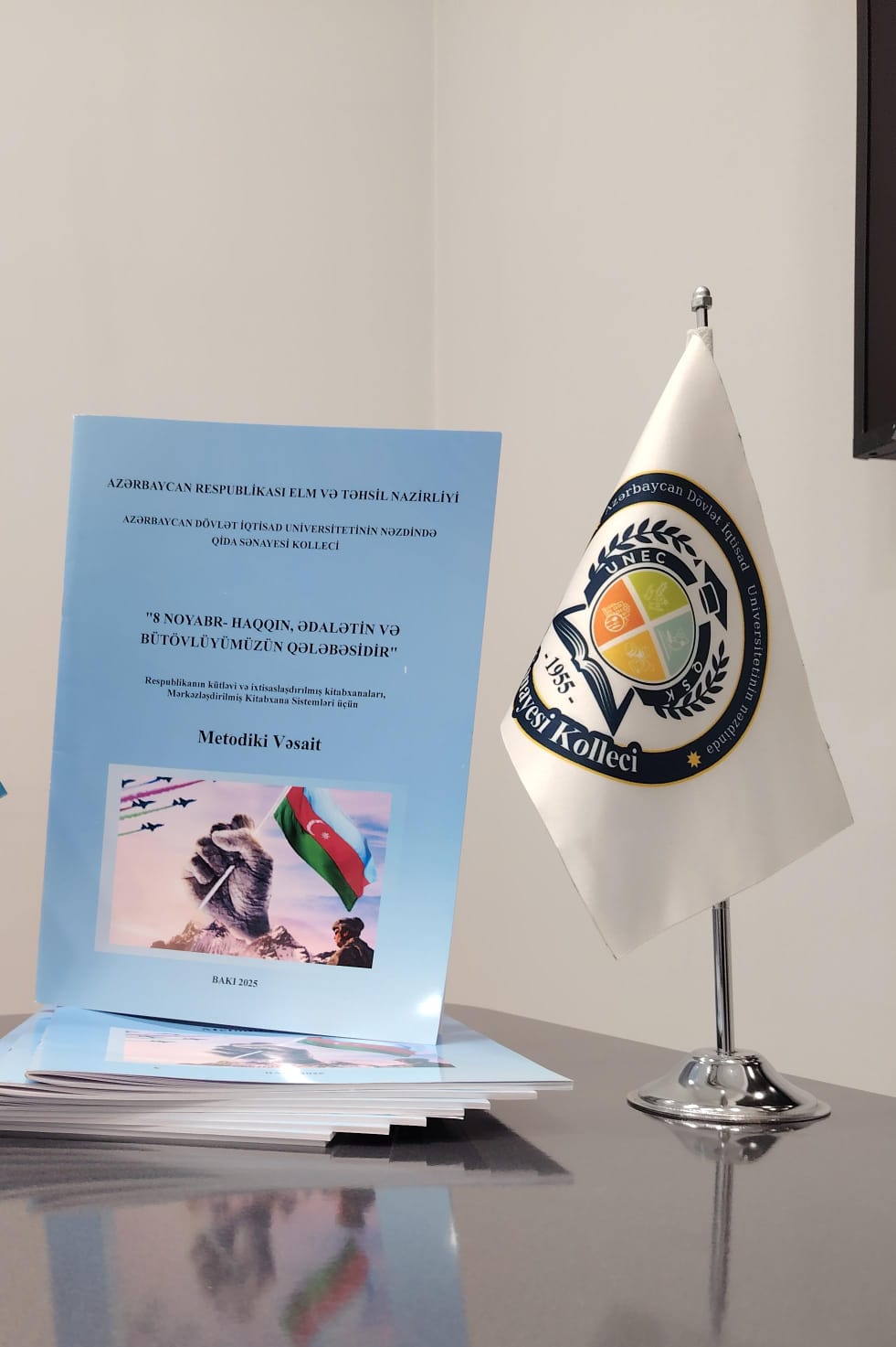 Bununla yanaşı, kollecin tarix müəllimi Kazımova Vüsalə tərəfindən hazırlanmış “8 Noyabr — haqqın, ədalətin və bütövlüyümüzün qələbəsidir” adlı metodik vəsait də nəşr olunub. Vəsait 8 Noyabr Zəfər Gününün tarixi əhəmiyyətini, siyasi və milli dəyərlərimizi, həmçinin bu günün dərslərdə necə tədris olunmasının üsul və metodlarını əhatə edir. Müəllim və tələbələr üçün praktik istifadəyə yönəlmiş bu vəsait müasir tədris prosesində əhəmiyyətli rol oynayacaq.